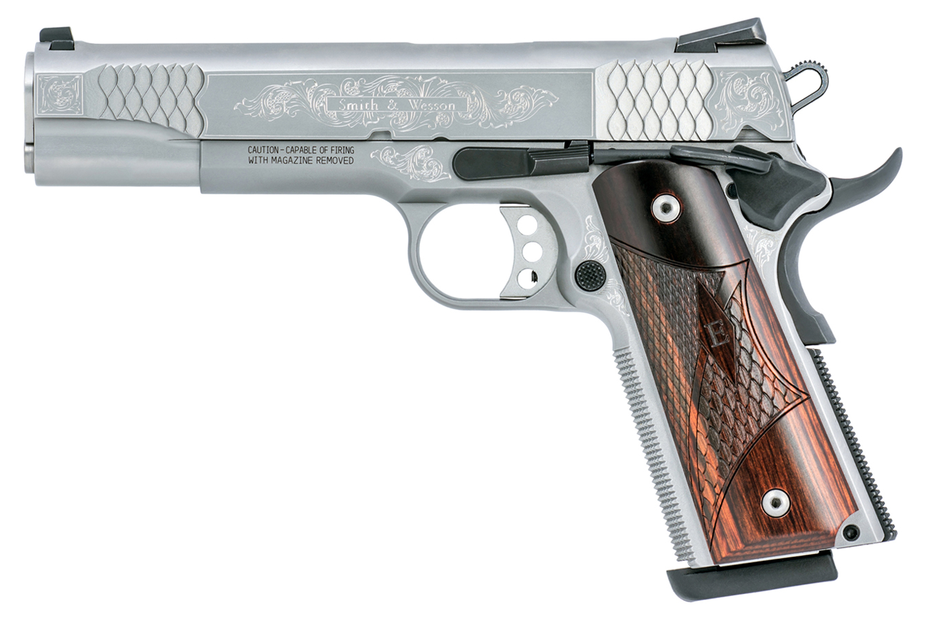 Buy Smith & Wesson Engraved 1911 45 ACP Pistol with E-Series Wood Laminate Grips Online