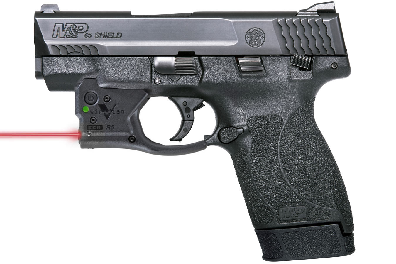 This S&W M&P45 Shield comes with a Viridian R5 Elite Red Laser.